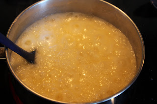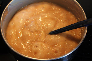 Stir for 4 minutes on medium high as it turns into a heavier syrup.