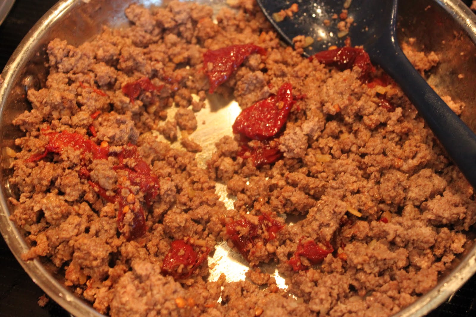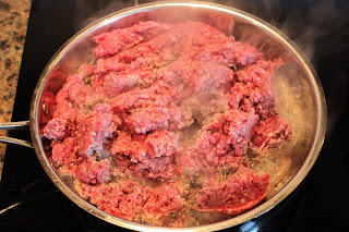 The teenager started with browning the hamburger.