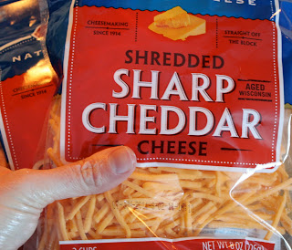 Cover the ham with plenty of shredded cheddar cheese and finish with freshly ground pepper.