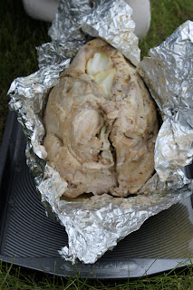 Along with some roasted potatoes and corn on the cob, the tender turkey made for a lovely camping supper.