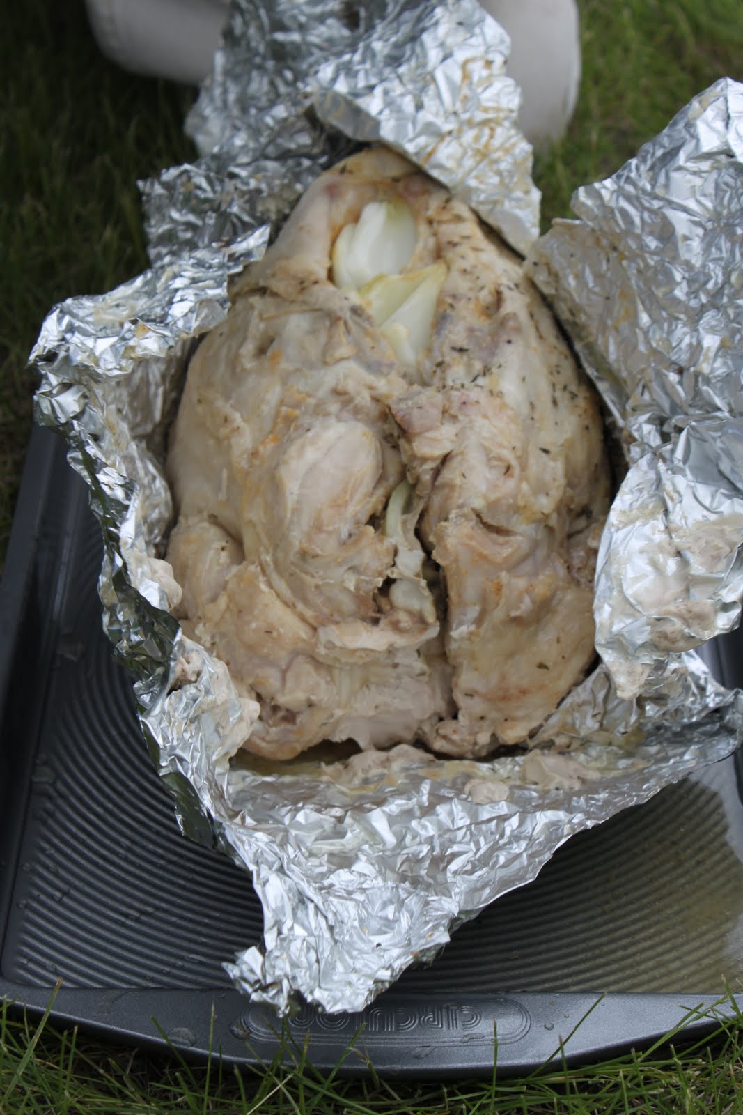 Along with some roasted potatoes and corn on the cob, the tender turkey made for a lovely camping supper.