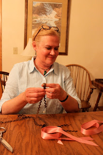 She just magically went to her sewing room and we came upstairs with the perfect ribbon and rickrack.