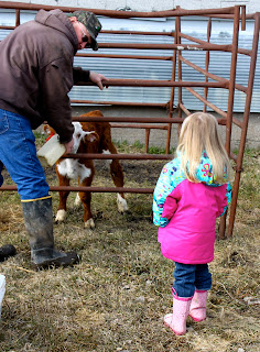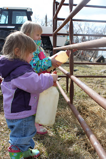 You might remember just over a month ago, we had two nervous and scared lil’ cowgirls visit the calving barn with Uncle Jim and me. But just look how far our lil’ cowgirls have come…in helping Uncle Jim feed a calf that needs bottle feeding.