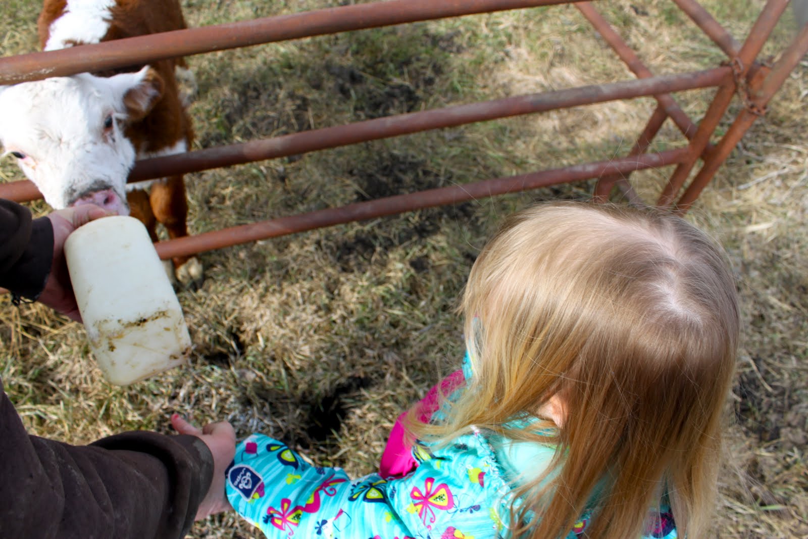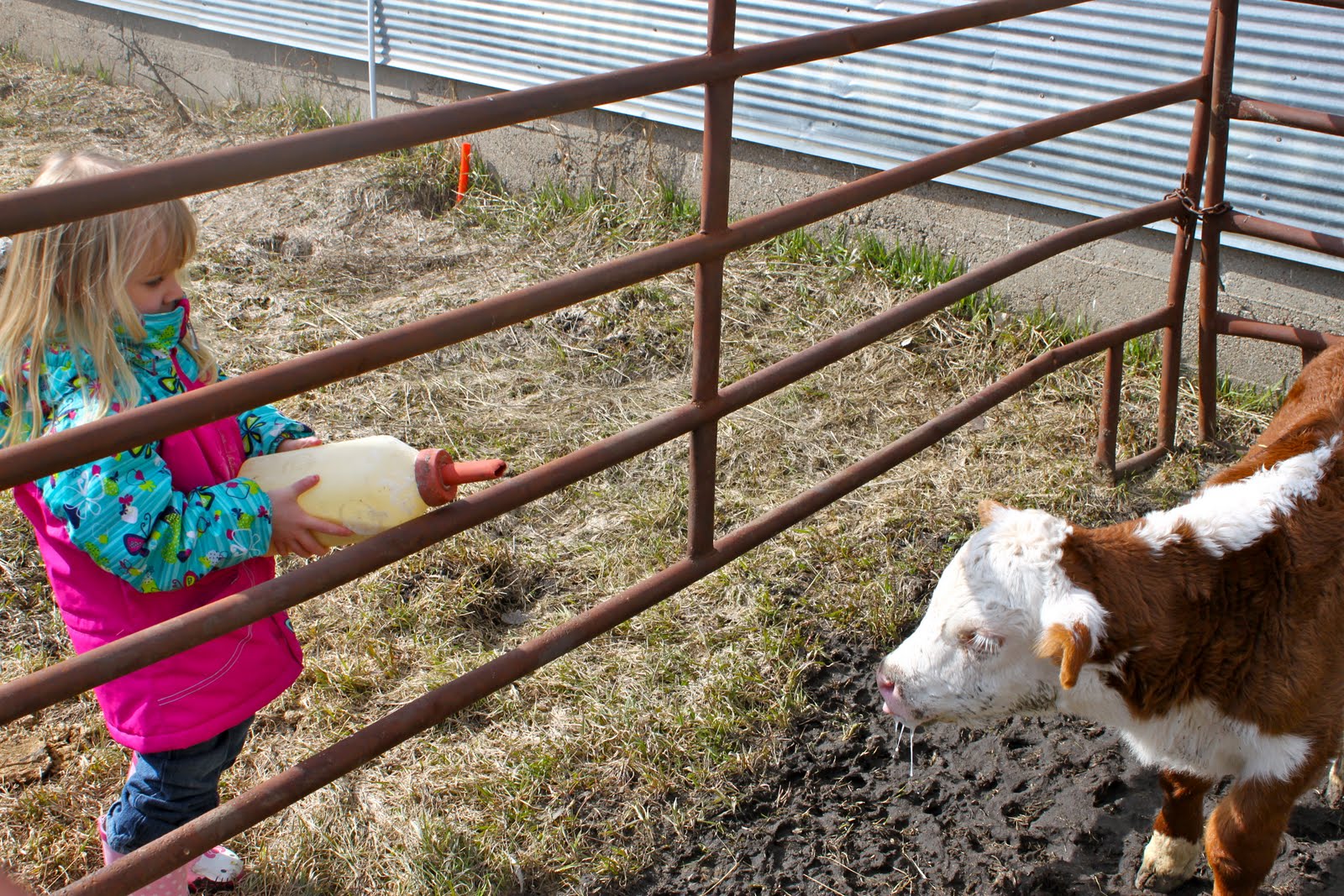 You might remember just over a month ago, we had two nervous and scared lil’ cowgirls visit the calving barn with Uncle Jim and me. But just look how far our lil’ cowgirls have come…in helping Uncle Jim feed a calf that needs bottle feeding.