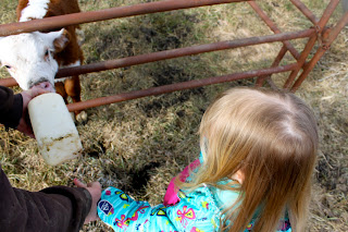 Of the 100 plus calves that have been born so far in my uncle and grandpa’s cattle operation, this is the only calf that needs to be bottle fed. But it is because his mama didn’t take to him and actually she took on another calf. She got a little confused obviously. But thankfully Uncle Jim knows what needs to be done.