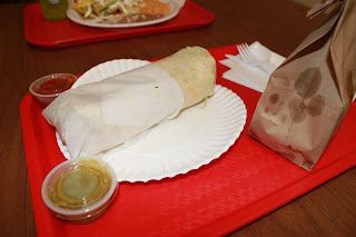 My enormous burrito, chips, salsa and large drink lunch combo was $7.01.