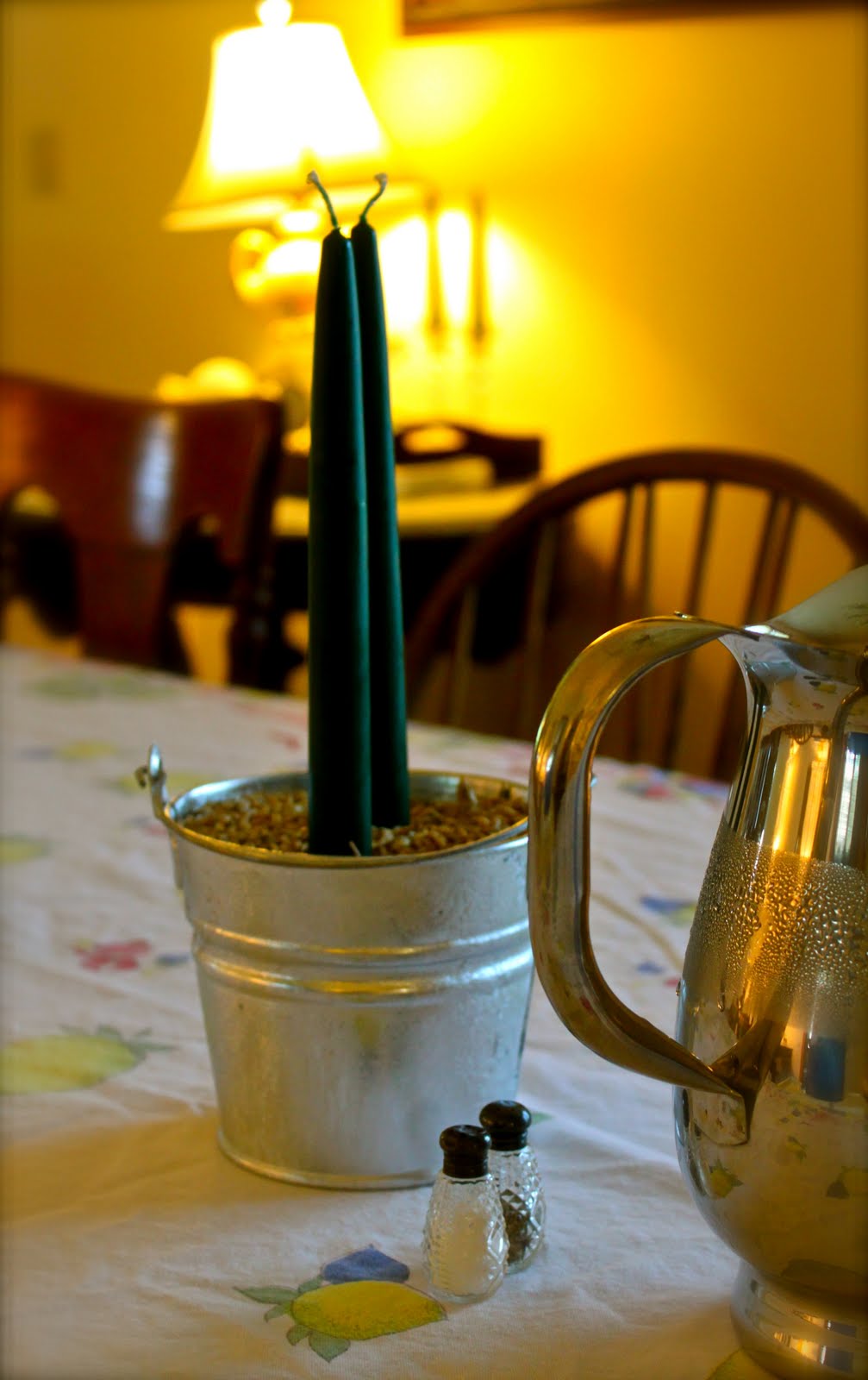 Inside the house, my mom shared two taper candles with me and I placed them into the barley filled bucket.