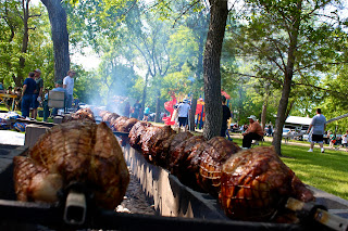 Our family gathers each year for the grand turkey barbeque festivities. It starts early when my 86 year old grandfather brings my brothers and son to the city park to get the turkeys on the spits. This year they roasted 312 turkeys.