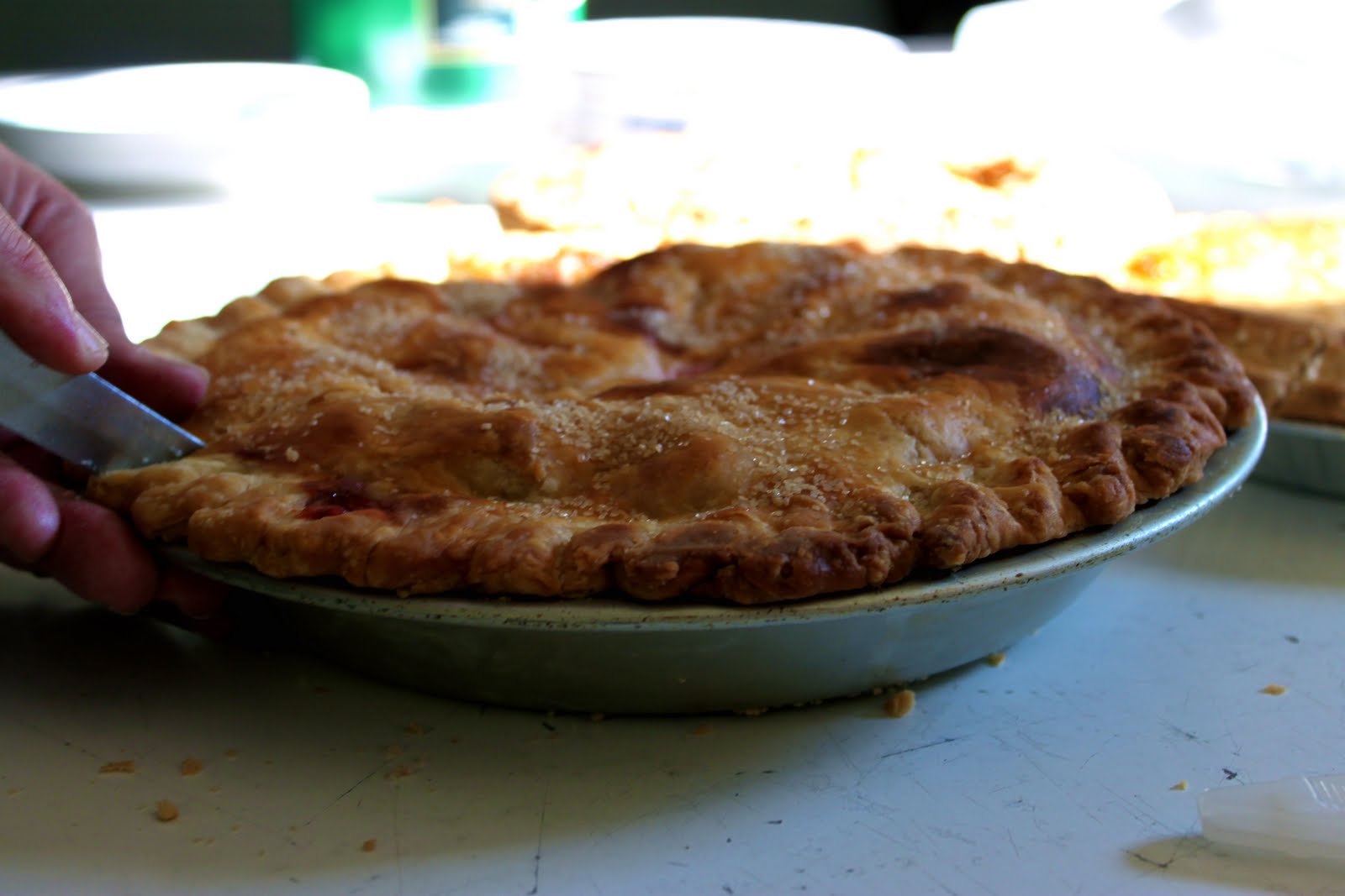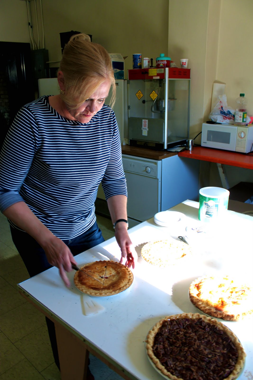 My mom showed her how to cut them and serve the Lutheran ladies’s pies.