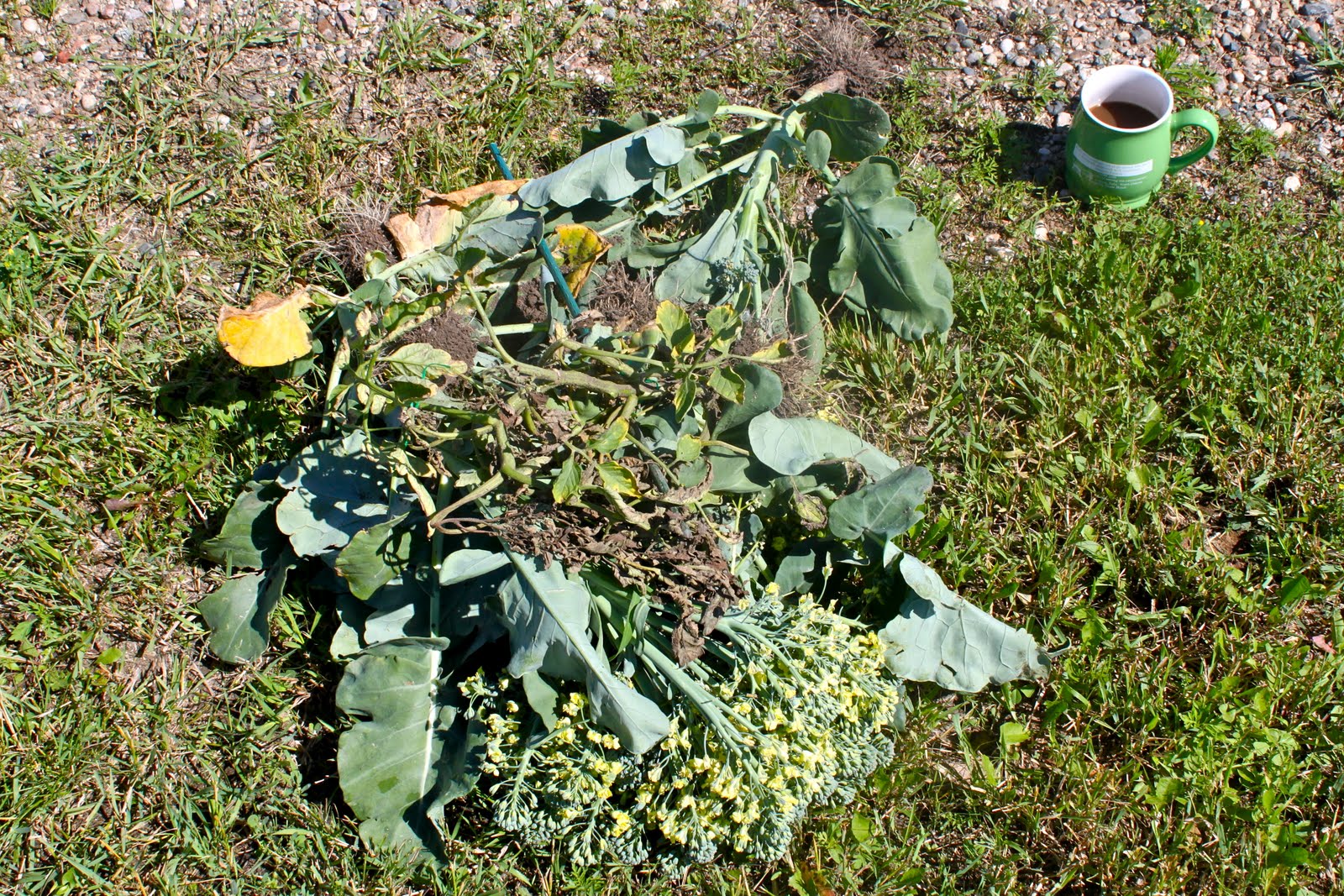 I needed a garden side cup of coffee while I pulled out my failed broccoli. |