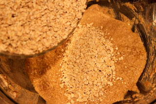 Preheat oven to 350F. Start by blending 1/2 cup brown sugar with 1/2 cup butter. I made 1 1/2 times the recipe for a larger pan of the baked oatmeal recipe. I have big eaters to feed. But what I am listing and showing you below is the listed recipe and serves 4-6, normal eaters.