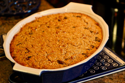 I decided it was time for a new breakfast after our son yesterday ate 8 fried eggs (he whipped up himself), 3 pieces of cheese, 4 pieces of toast with peanut butter, a banana, glasses of orange juice, water and his sisters’ fruit snacks. Thumbing through my new cookbook, I found an alternative for our son this morning before he was going to work with my husband. This Brown Sugar Baked Oatmeal recipe is easy, fast and a warm nutritious breakfast.
