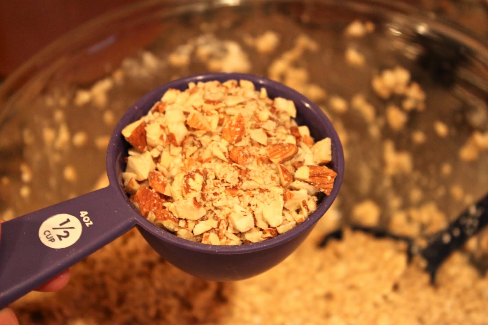 I added 1/2 cup of chopped almonds, straight from my almond farming friends, Brooke and Brent at 4G Farms who always seem to get me almonds when I visit California for work.