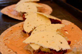I preheated the oven to 350F to have a place to warm up and melt the cheese on the wraps once they were assembled.