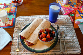 While the wraps warmed, I chopped up some fruit to accompany the wraps for supper and poured milk for everyone.