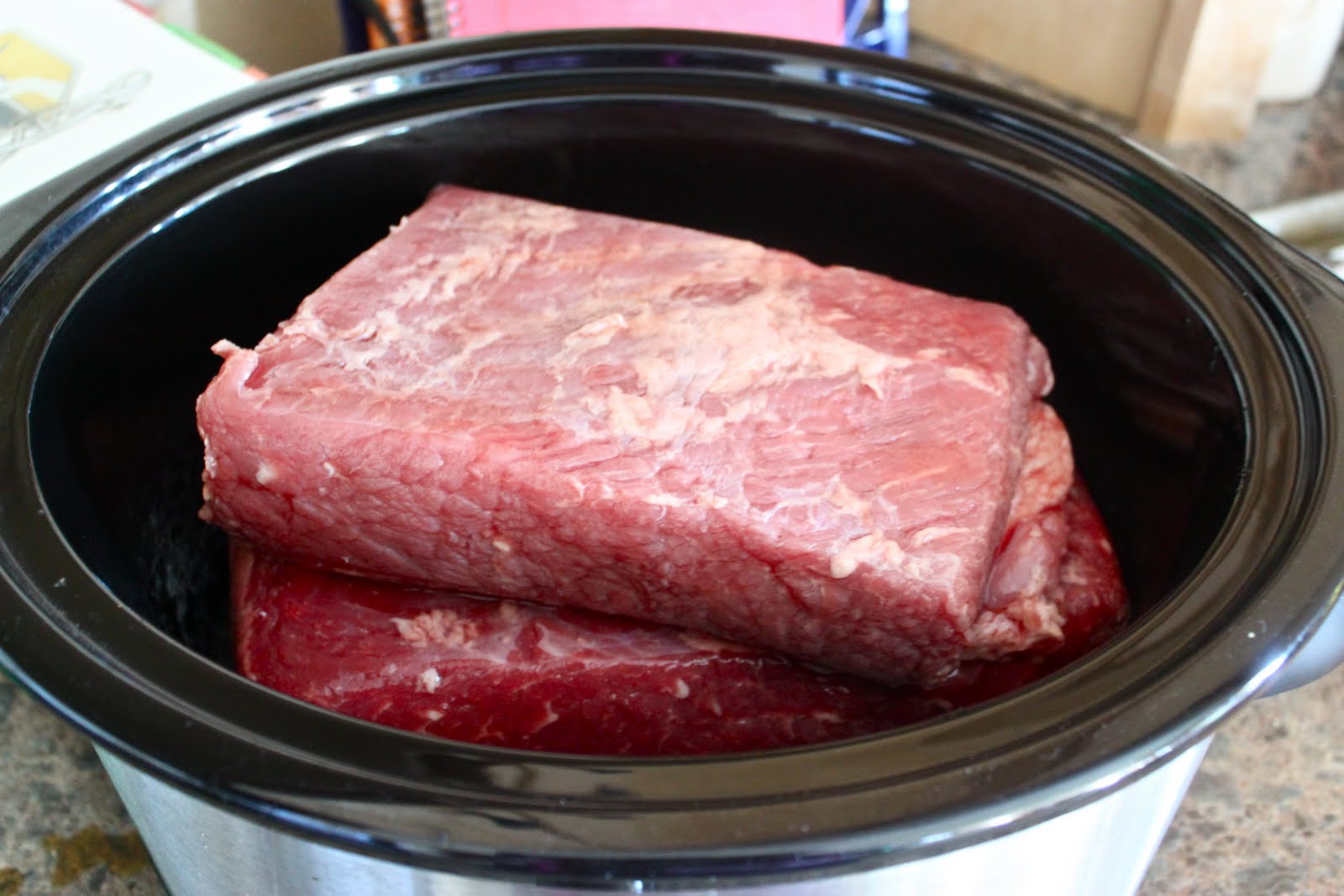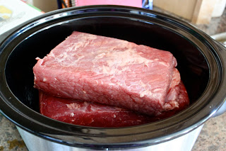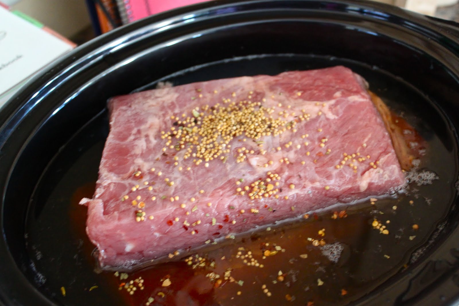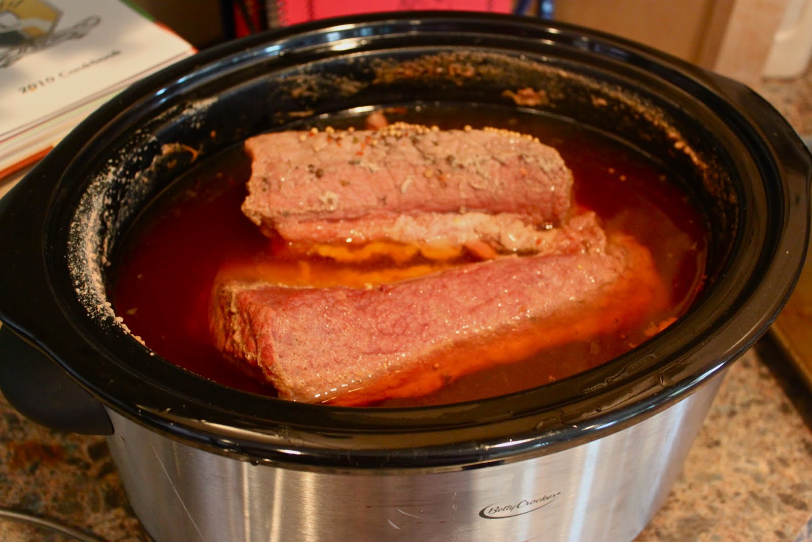 I started corned beef in my slow cooker Crock-Pot in the early morning.