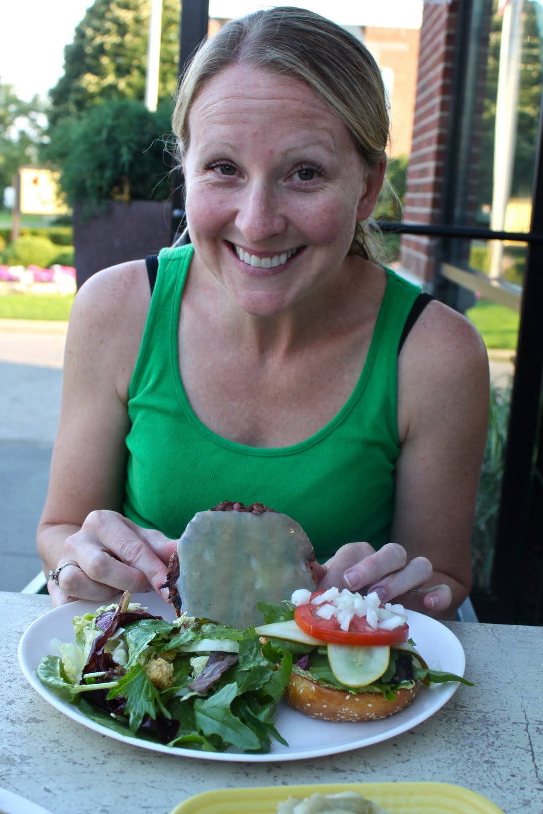 I told her about the California rice farmers I know and the leafy greens I have seen growing in California farm fields. I agreed to tasting her veggie burger but told her next time I was throwing some bacon on her burger.