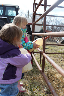 How sweet! I bottle fed calves when I was little too and I was always sad to see them grow up. What adorable little girls you have..those calves aren’t too bad looking either 🙂