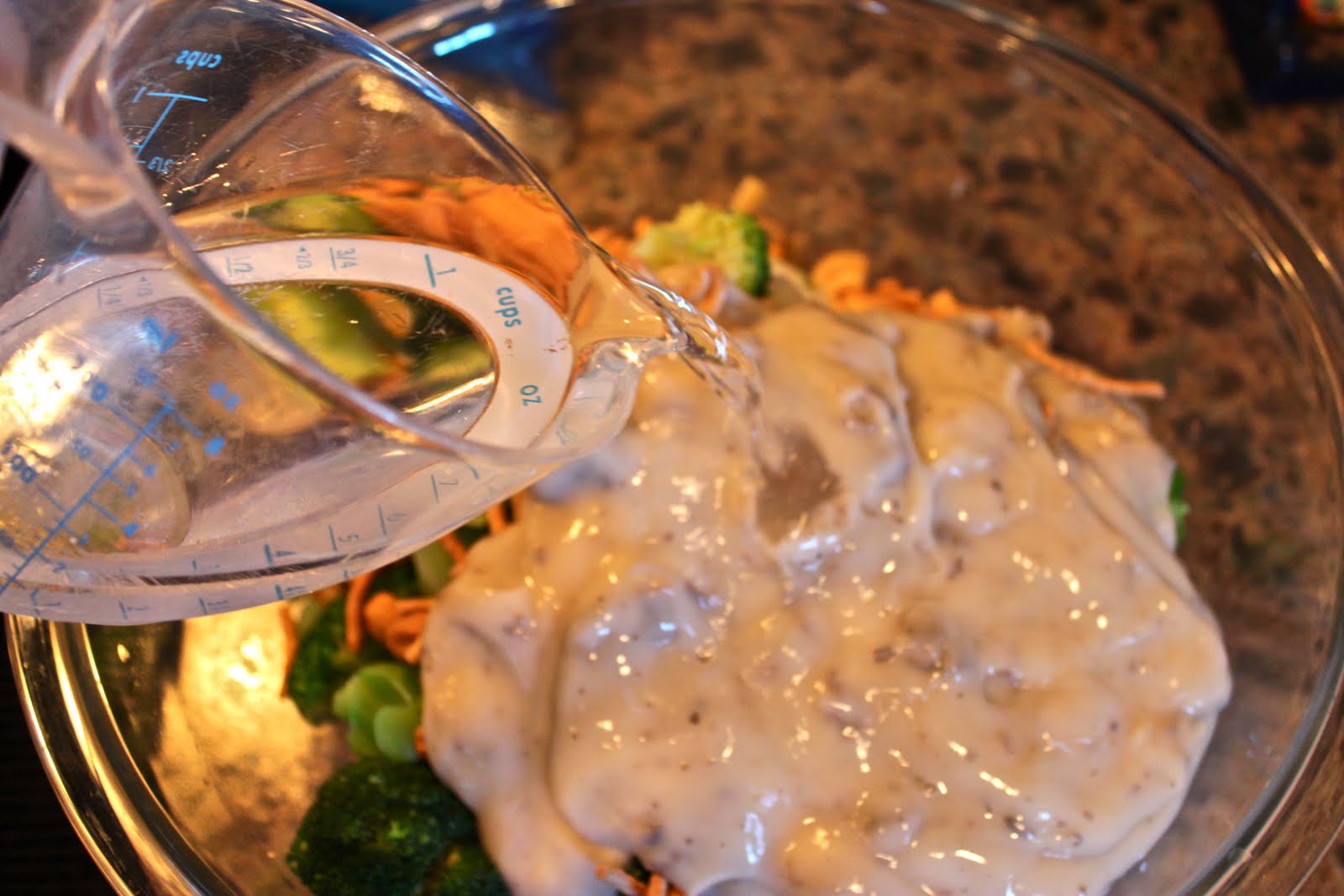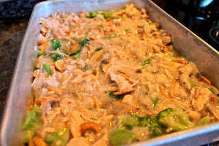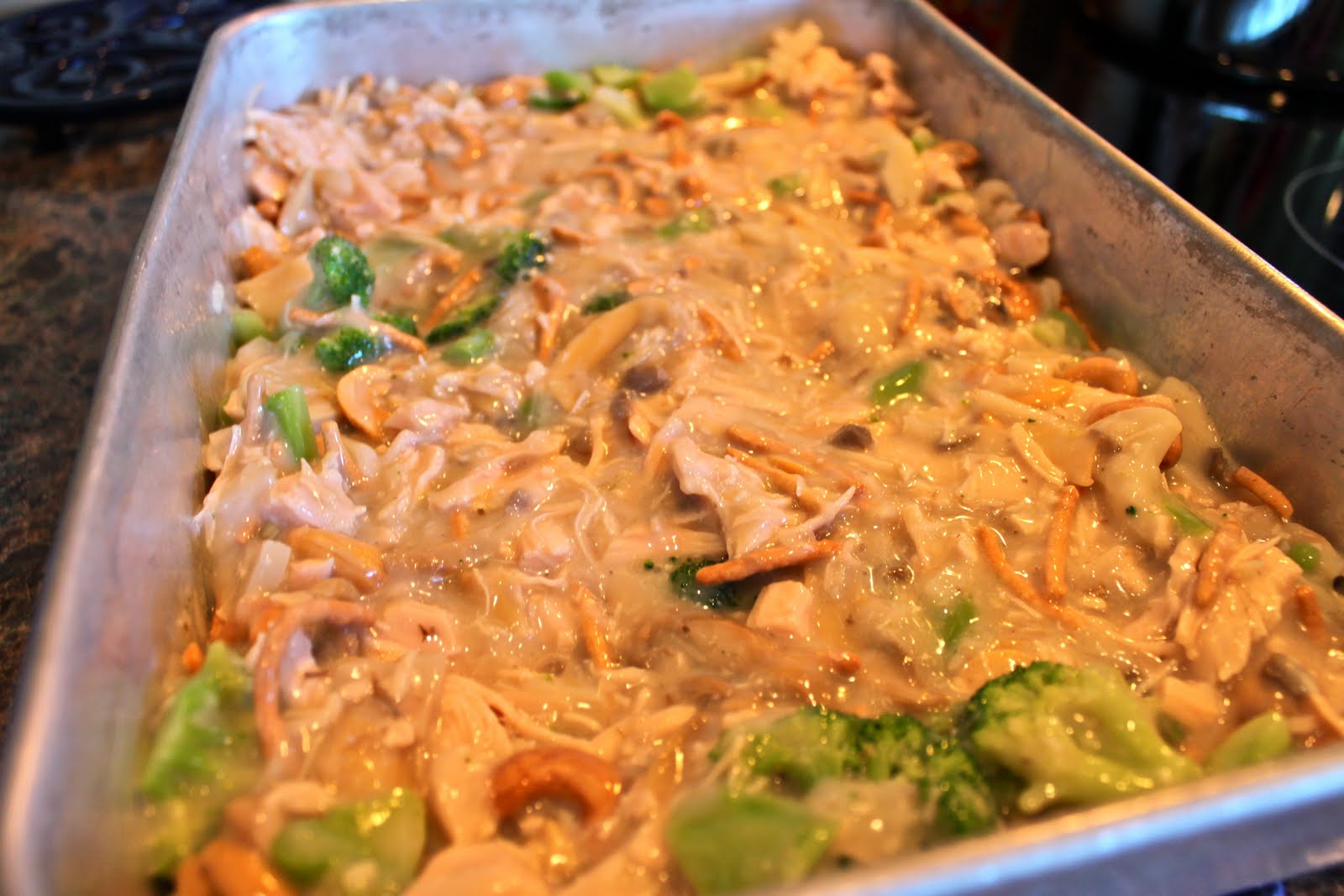 This would be a great recipe to use with leftover chicken. I had canned white meat chicken that I used. Everything I had in my pantry and literally it took me 10 minutes to pull these ingredients and combine all ingredients except half of the chow mein noodles.