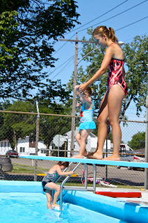 A favorite part of the prairie summer is our community swimming pool. We drive past the pool daily to go to daycare year round and there are months we see the pool full of leaves or snow. When it’s finally summer to enjoy the pool, we relish in the summer swimming fun. The teenager goes to “teen night” to swim. The girls go to lessons and often swim in the evenings with their Daddy after supper. Plus they often go with their daycare provider or me after nap time to the pool. Then, two nights a week I teach water aerobics in the pool.