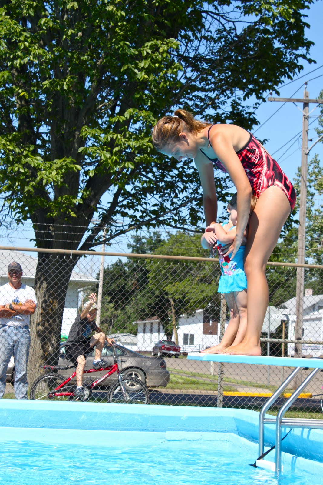 Miss A isn’t as bold on the diving board but she’s also younger and by next summer she’ll be jumping bravely off the board too. I know this as a fact because the girls are “practicing” diving board jumps in the basement next to me as I type.