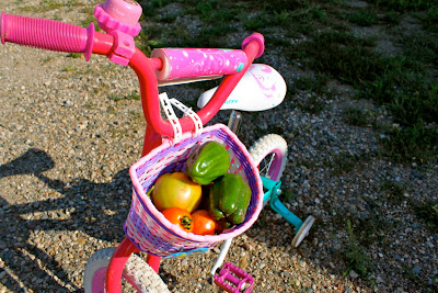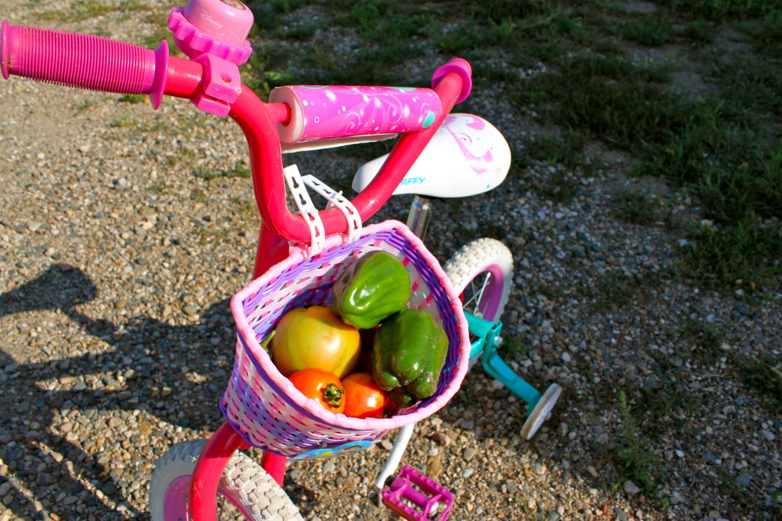 Looks like you had a fun time harvesting! Love the photo of the pink bike with the vegetables!