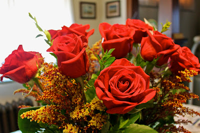 Adding more depth to the day was a side of roses to my soybean dust spa day. Not just any roses but particular roses that my grandpa ordered special for my grandma on their 60th wedding anniversary which was yesterday. Last night we had a lobster feast, corn on the cob and cheesecake for a family celebration, all put on by my mom. The combines rolled in from the fields just in time to join us for a late meal filled with laughter and plenty of entertainment from two overtired farm girls.