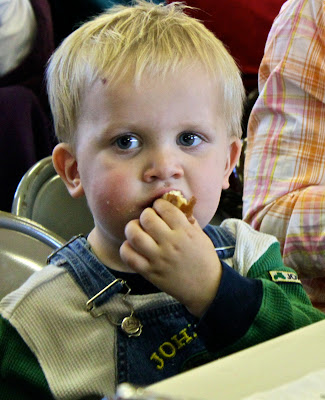 Only three kids were there to eat with us though. Miss E and Miss A had Val’s youngest George to enjoy the kraut with each other.
