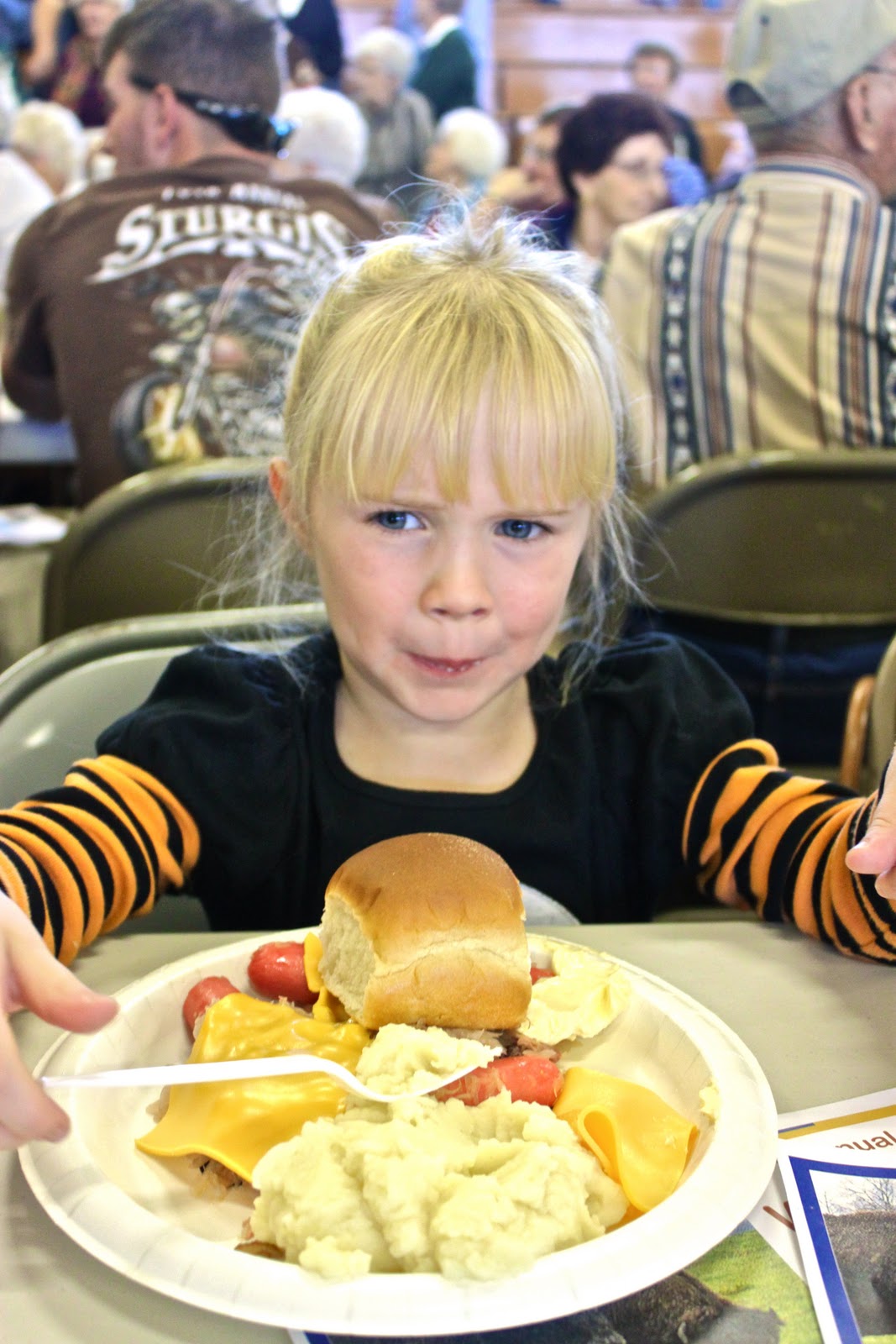 It’s not gourmet but I must admit it is tasty. I know you think it looks gross. But if you are a prairie foodie, you learn to appreciate local fare. The whole town smells like cooking sauerkraut and the civic center smelled very strong of it. I promise it tastes better than it smells. It is served with RED hot dogs, cheese, mashed potatoes, buns and pop (which you probably call soda).