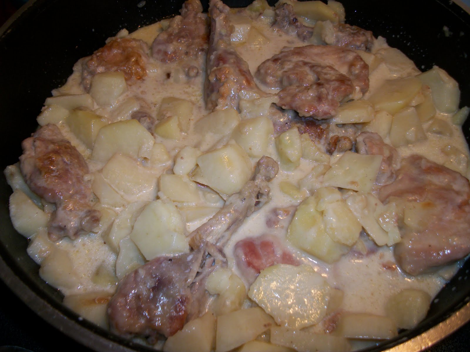 Cover with cream and simmer for 30-40 minutes, or until potatoes are cooked.