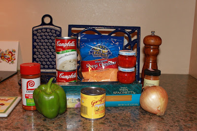 My inspiration is this recipe from Pioneer Woman for Chicken Spaghetti.