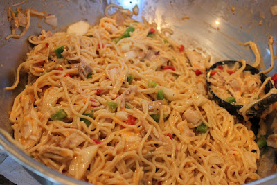 4. Place the cooked spaghetti into a large bowl. I did a double recipe and so this looks enormous.