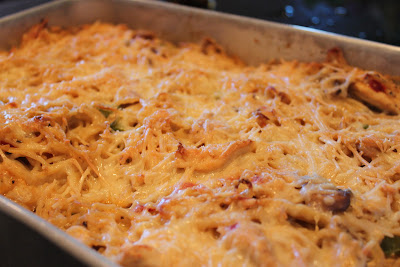 11. Pour the spaghetti mixture into a greased 9 x 13 baking pan