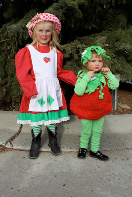 Dressing up like Strawberry Shortcake, cowgirl style with boots and her sidekick a strawberry seemed like the thing to do yesterday.