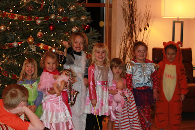They were dressed up from head to toe, parading around the house. Note that one of the three boys at the  party is checking them out but not participating in dress up time.