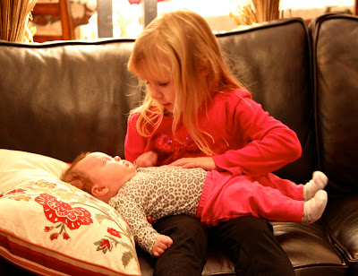 Miss E is a baby loving girl and took great pride in holding Baby O tonight. The highlight of the night for me came though when the girls found the dress up clothes…