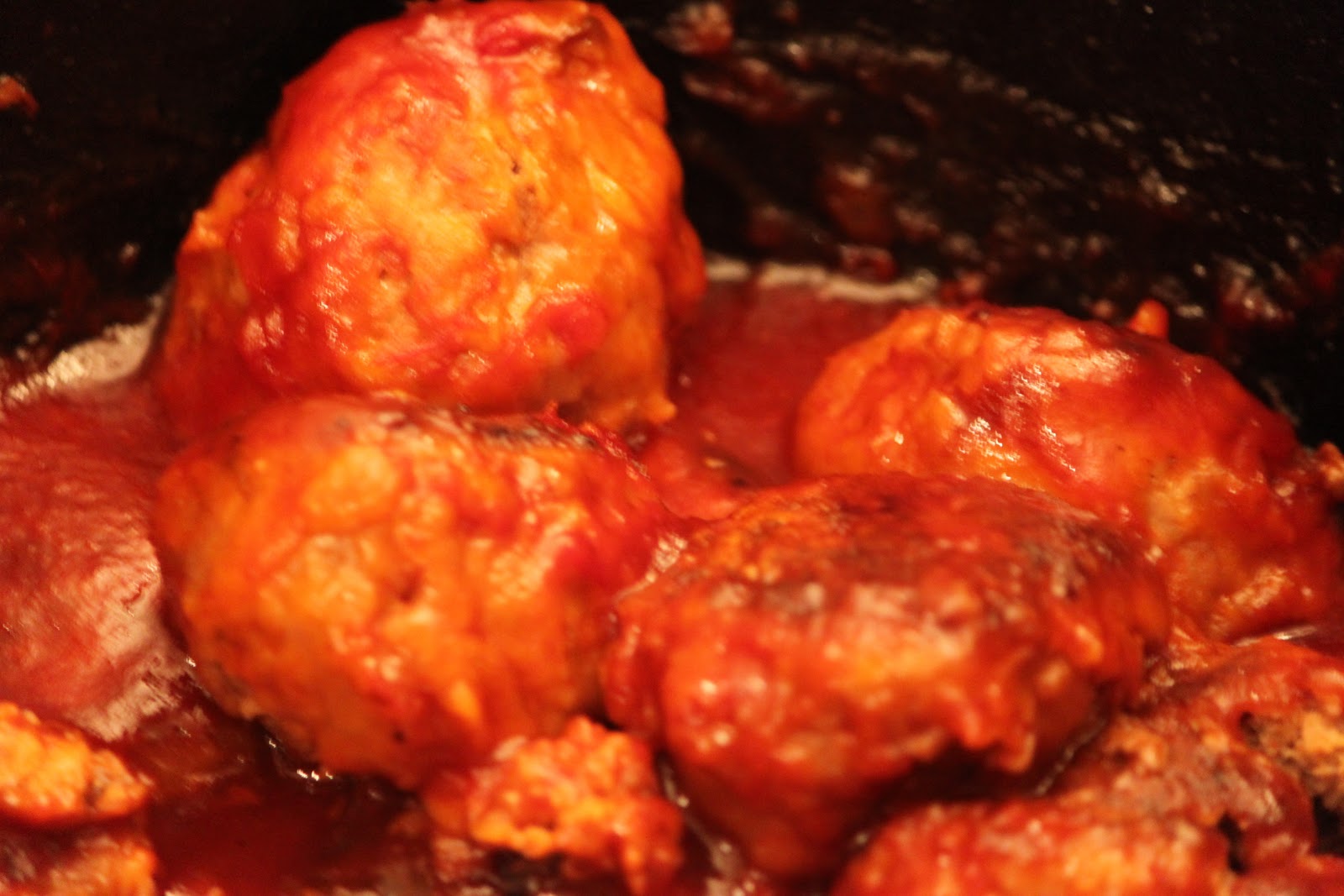 I doubled the recipe as usual and used a mixture of ground beef and pork. Usually I make beef meatballs but the pork/ beef mixture was excellent. I never follow a recipe for meatballs but realized what I do add is very similar to The Pioneer Woman’s Comfort Meatball Recipe which is in her first cookbook. I listed most of the measurements she lists in her recipe below…because I tend not to measure very well. However she makes a slightly different sauce. Any tangy, zingy sauce will do.