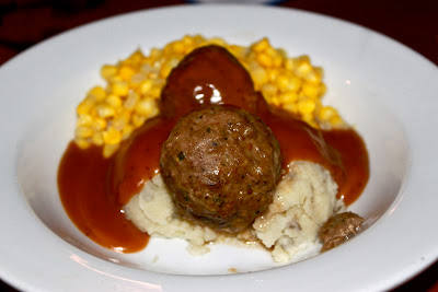 Meatballs and mashed potatoes are staples in family meals on the prairie. They aren’t sexy and probably frowned upon by many food snobs. But I was raised with them. It is comfort food and I love them. When we were in Disney World’s Epcot at a princess dinner in “Norway”, traditional meatballs were on the menu. Naturally we had to try them. My ancestors came from Norway. Meatballs are in my lineage. Below is just the kids’ serving of the “Norway” Epcot meatballs.