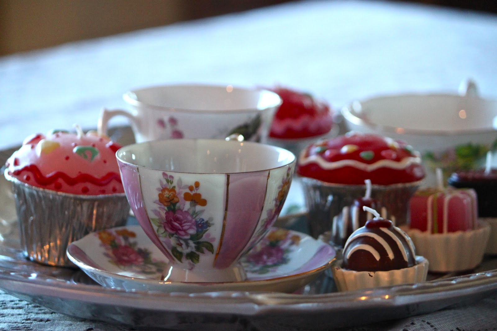 This is the most decorating with love I got done, a few tea cups with candles as a centerpiece…and frosting a few cookies (which my mom made).