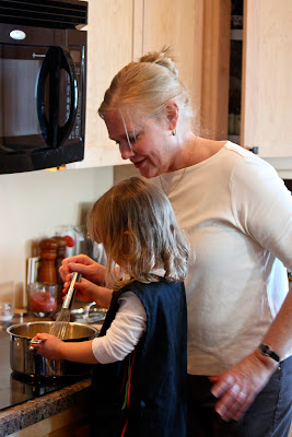 Miss A is honing her cooking skills today in the kitchen with my mom. I have the weekend off from cooking. My mom is cooking for us! My parents are here for our boy’s basketball team district tournament. Today my mom made a feast of Spanish Steak, mashed potatoes, green beans, cole slaw and a platter of cakes and cookies. Nana and Grandpa Eldon, my husband’s parents and my brother Robbie joined us. Tonight we’ll all be at the game cheering on our Mustangs in the 3rd place game. We lost a hard game last night to the top team in the district and are hoping for a win tonight!