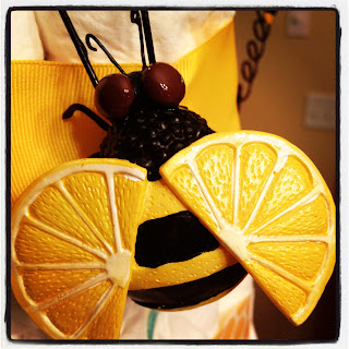 Then we used our bee decorations to finish our baby bee diaper cake! My friend Brenda, her husband and family are honey bee farmers. She provided bee decorations and the fresh honey. My friend Sonia’s husband also works in the honey bee business and Sonia added more decorations. My friend Amanda and I also spent an hour after work finding all bee decorations on sale in “seasonal” at Hobby Lobby. A very helpful sales lady cruised the store finding us all the cute decorations we could have never found. We also found bee print fabric that was 30% off plus an additional 40% with a coupon.