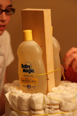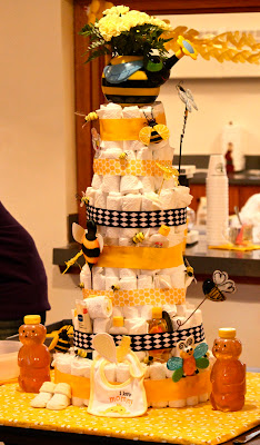 You guys made an enormous diaper cake AND it came out so cute! I do love the bee theme.