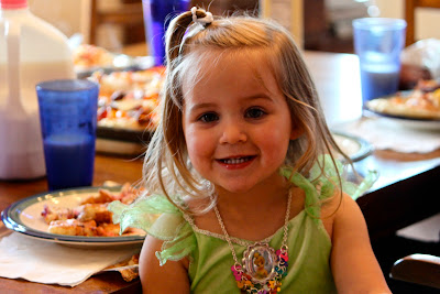 Breakfast pizza was cut and served immediately to princesses at our house along with a starving like a pack of wolves teenager and big appetite husband.
