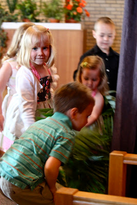 Nathan and I talked about waving the palms and Jesus riding the donkey after church with the pre-school aged children. Then we discussed His death and why we celebrate Easter.