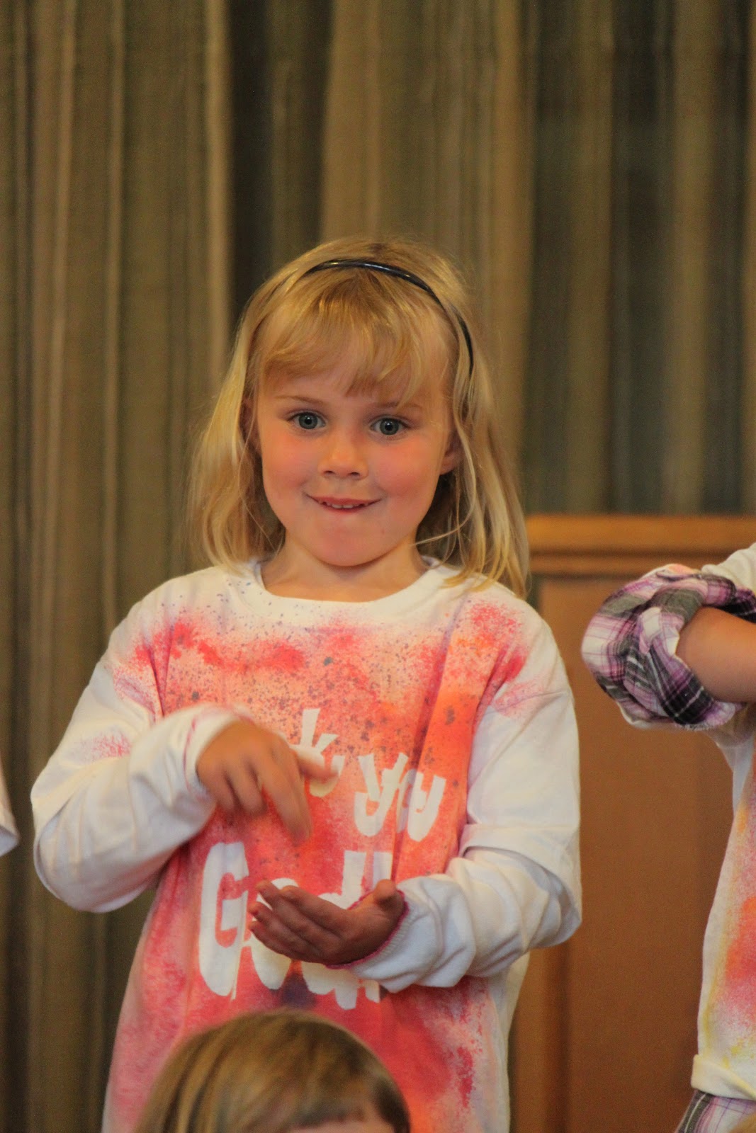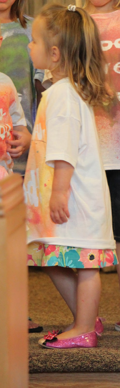 Then there is Miss A, age 2 nearing age 3. She is very…busy. She wanted to attend Bible school, walking in each evening without hesitation. But sitting still? No way. Standing in front of an audience to sing? Not a chance.