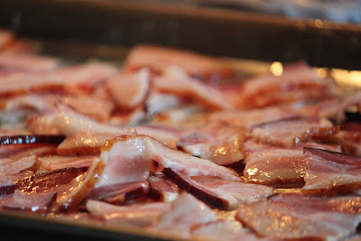 Start with baking or frying 1 lb. of bacon. I bake bacon for 15 minutes at 400F for crispy. If like less crispy, 325F for 20 minutes works.