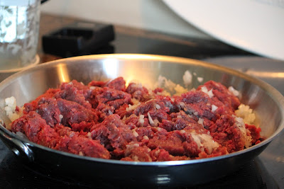 Brown the finely diced onion with the lean hamburger while the bacon bakes.