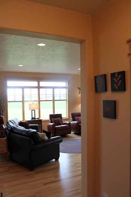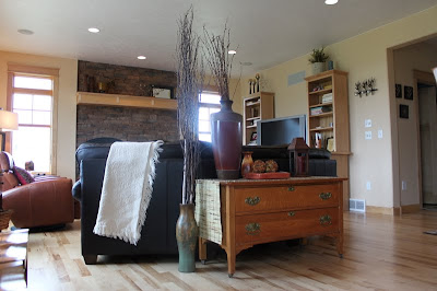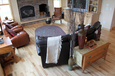 An important thing to consider with placing the couch was the flow of traffic. The front entry is in the background on the left. The doorway in the foreground on the right goes downstairs. This is a high traffic zone that needs plenty of space.