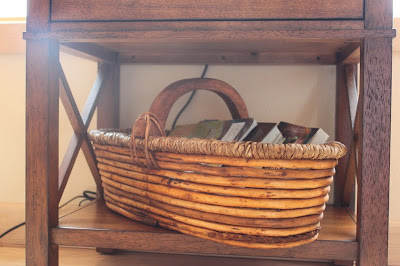 Some baskets to hold books and magazines,