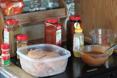 Stir together dry spice ingredients. I made this camping. Yes I camp with bulk sized spices.